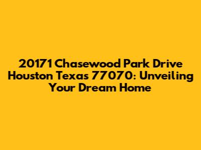 Alright, guys, let's dive into the specifics of 20171 Chasewood Park Drive Houston Texas 77070! This address is more than just a string of numbers; it's a potential gateway to a new chapter, a place to build memories, or maybe even a smart investment. We're going to break down everything you need to know about this property, from its location and surrounding neighborhood to what kind of lifestyle it might offer. Whether you're a first-time homebuyer, a seasoned investor, or just curious about what's out there, this guide is for you. Get ready to explore the possibilities of 20171 Chasewood Park Drive, and discover if it could be your perfect match. We'll cover everything from the basic details, like the type of property and its size, to the more nuanced aspects, such as local amenities, schools, and nearby attractions. Our goal is to give you a comprehensive understanding, helping you make an informed decision and visualize what life could be like in this Houston home. So, buckle up, because we're about to embark on a virtual tour of this promising address.