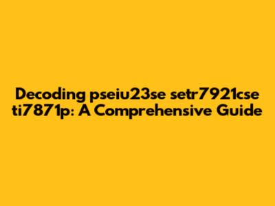 Decoding 'pseiu23se Setr7921cse Ti7871p': A Comprehensive Guide