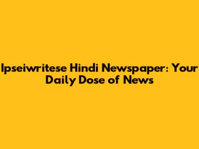 Ipseiwritese Hindi Newspaper: Your Daily Dose Of News
