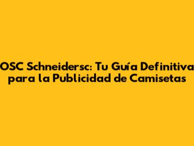 OSC Schneidersc: Tu Guía Definitiva Para La Publicidad De Camisetas