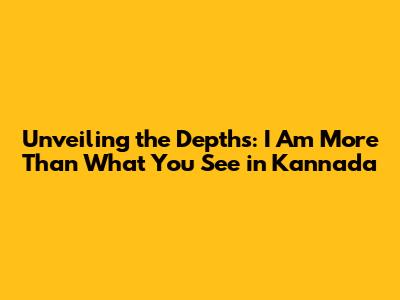 Unveiling The Depths: 'I Am More Than What You See' In Kannada