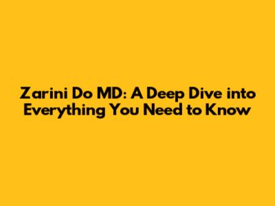 Zarini Do MD: Comprehensive Guide & Insights
